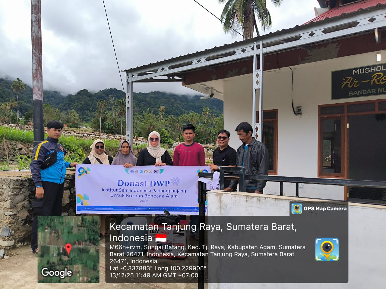 Kegiatan penyaluran bantuan ini didampingi langsung oleh Rektor ISI Padangpanjang, Dr. Febri Yulika, S.Ag., M.Hum., bersama Ketua DWP ISI Padangpanjang, Dr. Susi Fitria Dewi, serta beberapa anggota DWP ISI Padangpanjang yang turut hadir ke lokasi. Kehadiran pimpinan dan anggota DWP tersebut menjadi wujud nyata kepedulian dan empati terhadap masyarakat.