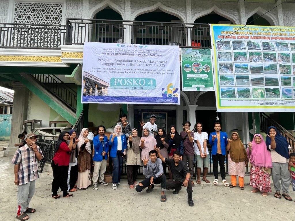 Agam — Institut Seni Indonesia (ISI) Padangpanjang sebagai perguruan tinggi yang hadir dan berdampak bagi masyarakat. Melalui Tim Tanggap Darurat, ISI Padangpanjang menyalurkan sebanyak 900 paket logistik serta bantuan sarana suplai air bersih kepada warga terdampak banjir dan longsor di Nagari Sungai Landia, Kecamatan IV Koto, Kabupaten Agam, Jumat (20/12/2025).